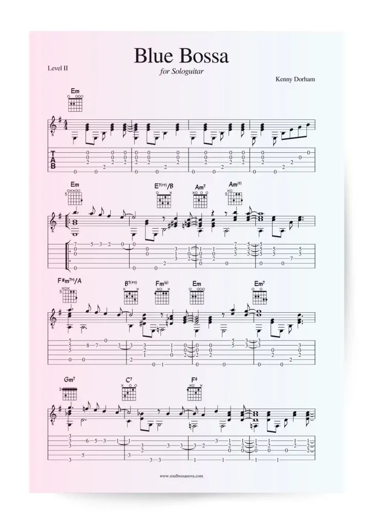 Blue Bossa is without question one of the most popular Latin jazz songs. This is the original solo guitar arrangement of this classic jazz standard.