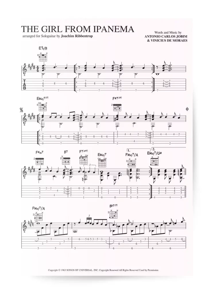 The original solo guitar arrangement of the greatest of all bossa nova songs is here!