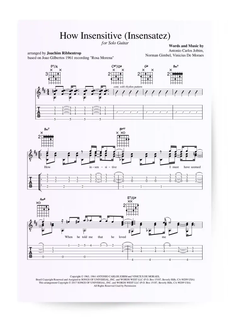 This arrangement is modelled on João Gilbertos recording of O Amor, o Sorriso e a Flor, released in 1961.