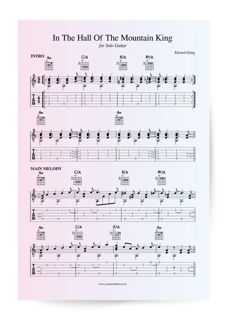 This arrangement draws inspiration from the guitar style of Baden Powell, the harmonic vocabulary of Tom Jobim and the music of Peer Gynt.