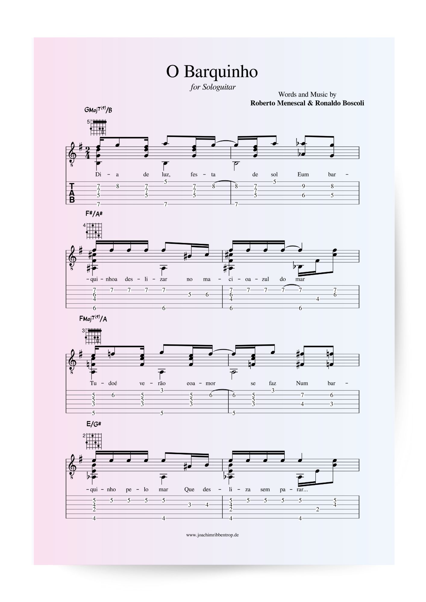 - Intermediate Level Solo Guitar Arrangement