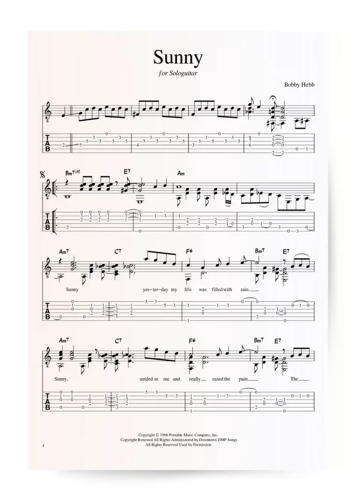 Original arrangement for solo guitar, including the improvised section which is written out.