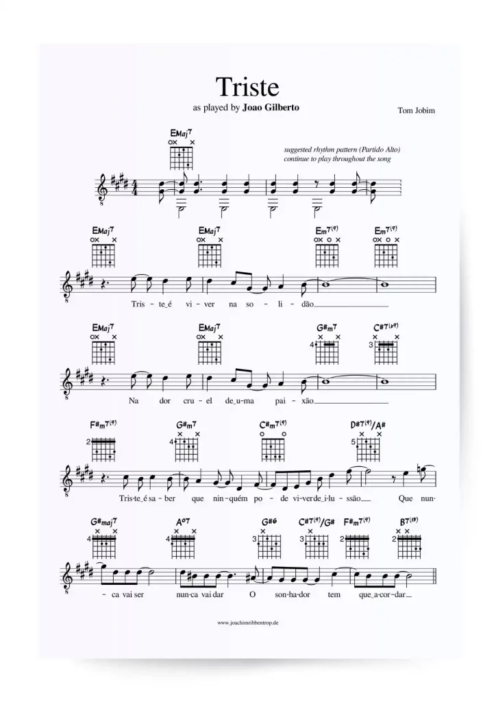Transcription of the Chord Voicings to Triste as played by João Gilberto