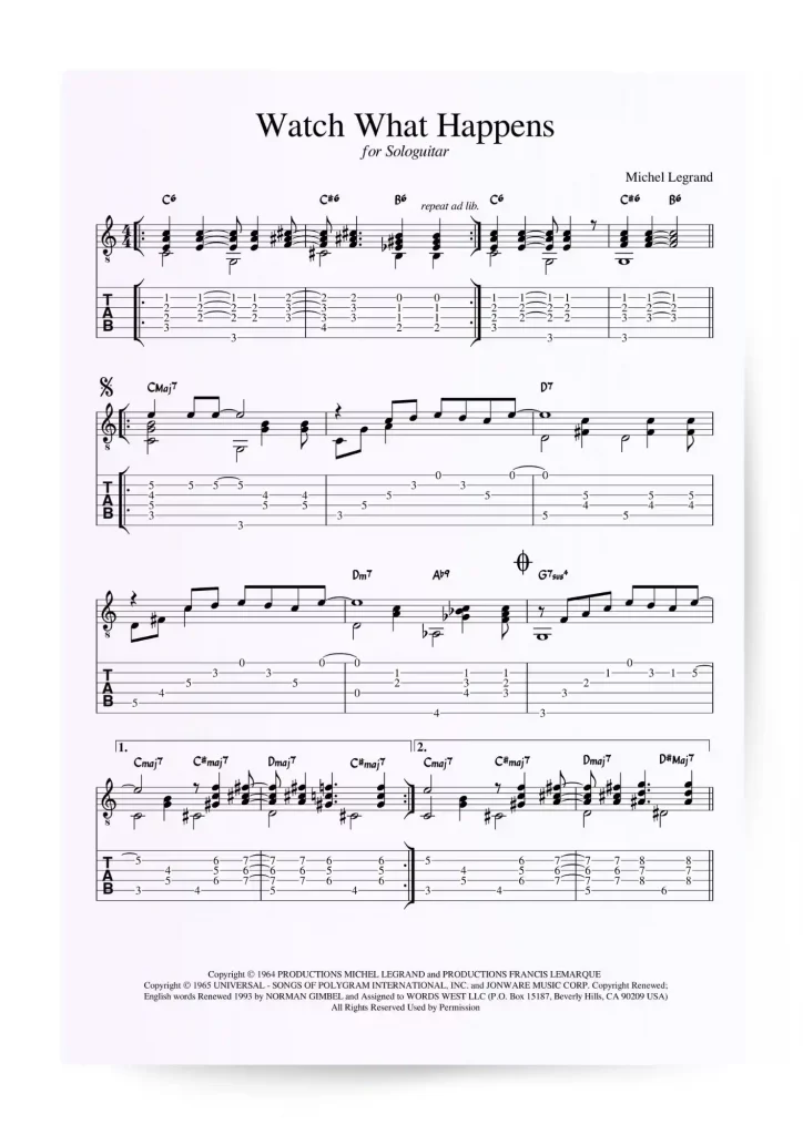 Watch What Happens is a delightful composition by the highly regarded film composer Michel Legrand. In this arrangement, the focus is on swift chord movements and an uplifting bossa groove.